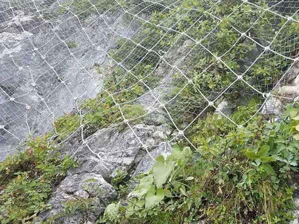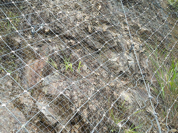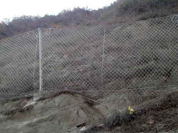 材質(zhì):鋼絲繩網(wǎng) 、普通鋼絲格柵(常稱鐵絲格柵)構造:通過鋼絲繩錨桿和/或支撐繩固定方式,系統(tǒng)的開放性,地下水可以自由排泄,避免了由于地下水壓力的升高而引起的邊坡失穩(wěn)問題;該系統(tǒng)除對穩(wěn)定邊坡有一定貢獻外,同時還能抑制邊坡遭受進一步的風化剝蝕,且對坡面形態(tài)特征無特殊要求,不破壞和改變坡面原有地貌形態(tài)和植被生長條件,其開放特征給隨后或今后有條件并需要時實施人工坡面綠化保留了必要的條件,綠色植物能夠在其開放的空間上自由生長,植物根系的固土作用與坡面防護系統(tǒng)結為一體,從而抑制坡面破壞和水土流失,反過來又保護了地貌和坡面植被,實現(xiàn)比較好的邊坡防護和環(huán)境保護目的。